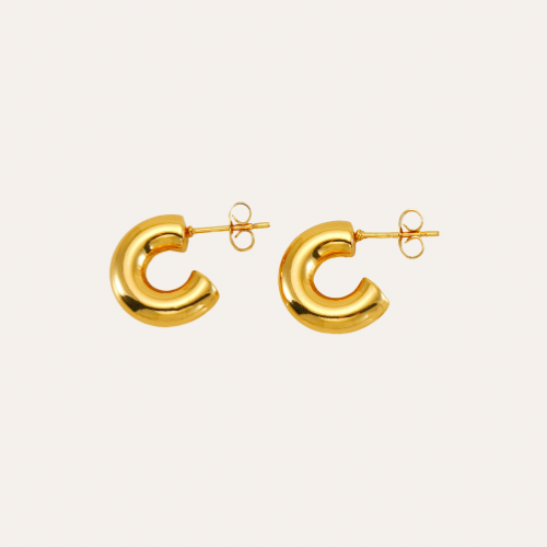 Elevate your everyday look with the Penelope Mini Hoops. Crafted from durable stainless steel and finished in a radiant gold tone, these lightweight, chunky mini hoops are perfect for daily wear. Their bold yet minimalist design makes them a versatile staple—easy to dress up or down.